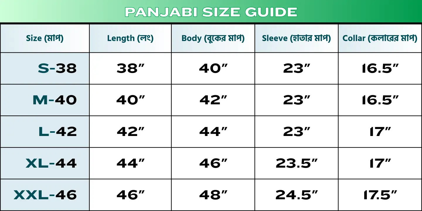 সাইজ: ৪০, ৪২, ৪৪, ৪৬।